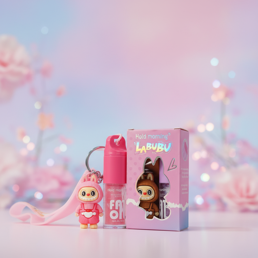 Hold Morning LABUBU Cute Lip Oil & Keychain Set